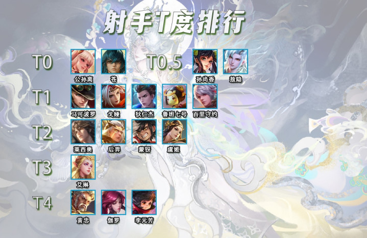 T0的射手还是这两位,公孙离一如既往的非办必选英雄,不过这个版本姬小满崛起了,元坦也崛起了,玩公孙离的日子没有之前好过了,还是要注意这些英雄,不然被打两下小身板是真扛不住。苍的出场率现在不高了,但是在很多阵容中强度很高,拉扯能力极强,对线有二技能狼魂也不弱,在后期装备成型的情况下输出自保能力兼顾,有一种孙尚香升级版的感觉。